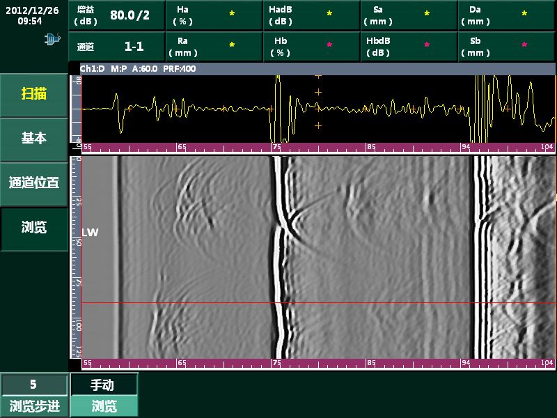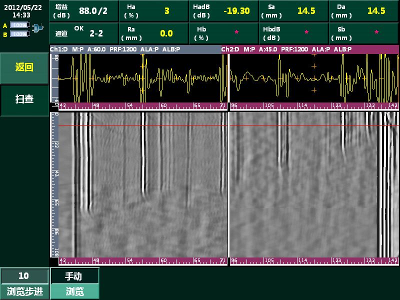雙閘門:可測(cè)量回波幅度、聲程、水平距離、垂直距離、閘門間距離