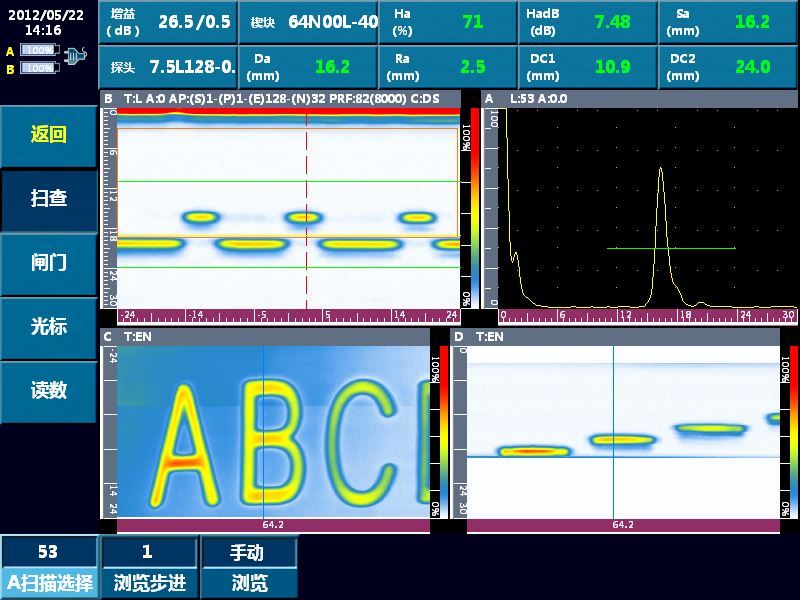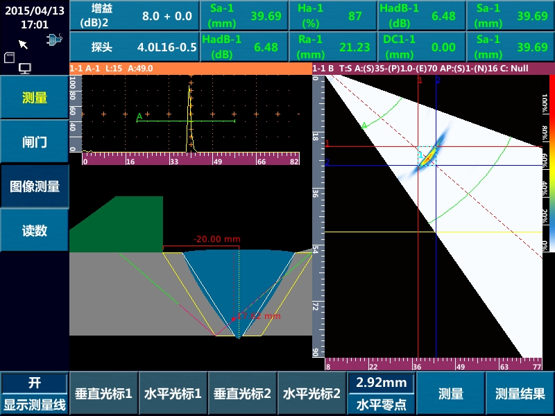 三閘門:可測量回波幅度、聲程、水平距離、垂直距離