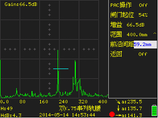 - 配合峰值回波、圖像凍結(jié)功能,快速確定缺陷高波,探傷更高效