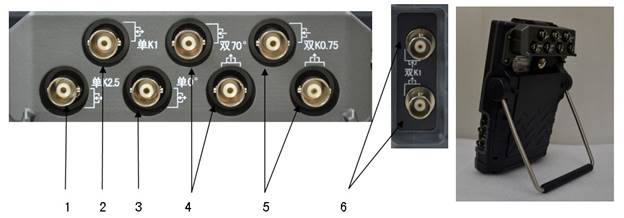 單體雙70°探頭用于從軌頭踏面或軌頭側(cè)面對軌頭進(jìn)行掃查(雙70°軌頭通道時);該對插座也用于定義為雙K1軌頭側(cè)面,對軌頭進(jìn)行K型掃查(雙K1軌頭側(cè)面通道時) |