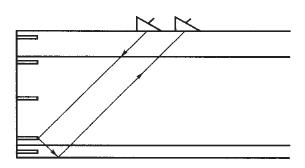 從軌頭踏面對軌腰進(jìn)行串列式掃查(雙K0.75串列軌腰通道時) |