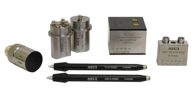 使用高性能的壓電復合材料,在提升靈敏度的同時也帶來更好的信噪比。在各種粗晶及纖維結(jié)構(gòu)等高衰減比傳統(tǒng)壓電晶片探頭擁有更高的穿透力,脈沖寬度更短使得縱向分辨率更高,在各種情況下都可以獲得比傳統(tǒng)探頭更高的頻帶寬度(可以達到120%以上),與低聲阻抗材料的匹配也更佳,便于與各種楔塊材料及水相匹配。以此復合材料為基礎(chǔ),我們提供各種水浸探頭,延遲塊探頭,單雙晶直探頭、斜探頭等,在產(chǎn)型號的頻率范圍覆蓋0.5MHz到15MHz,并接受更高頻率探頭的特殊定制。