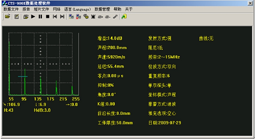 探傷回波、曲線、參數(shù)等經USB接口無損轉存到U盤,由U盤將數(shù)據(jù)導入計算機,方便報告編輯及數(shù)據(jù)管理。