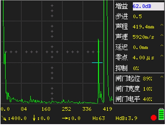 圖示為400mmΦ2平底孔鍛件試塊的回波
