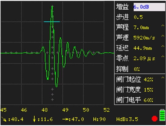 通過抓取回波,準確檢測出探頭的中心頻率,500mm范圍內任意波幅回波,一鍵輕松完成檢測。