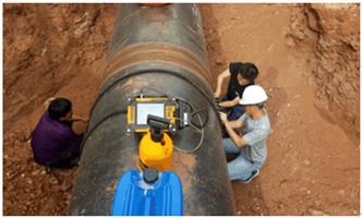 現(xiàn)場檢測石油化工長輸油氣工程管道是利用專用掃查架與SUPOR 32PT相控陣超聲檢測儀進(jìn)行相控陣檢測,以下是現(xiàn)場檢測的圖片: