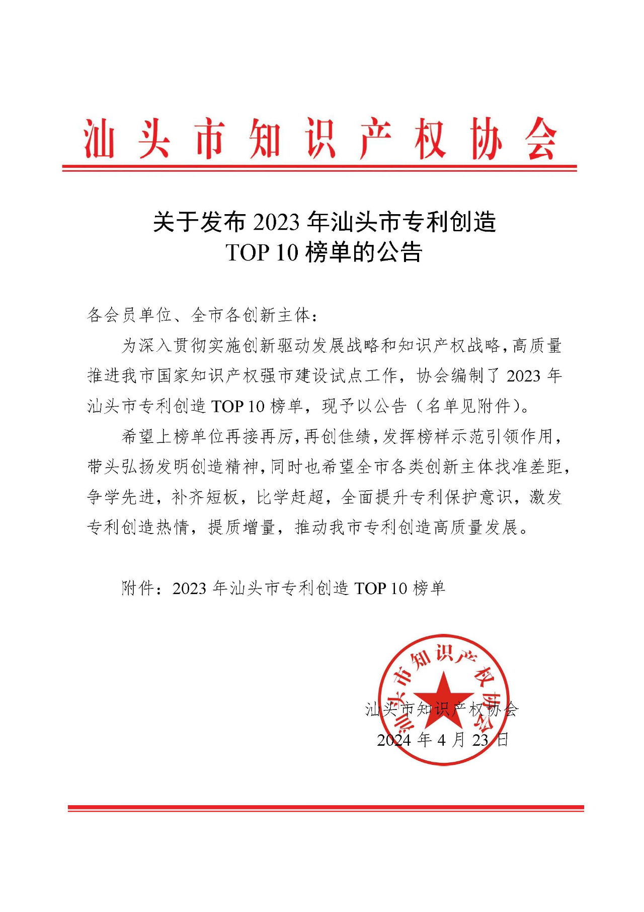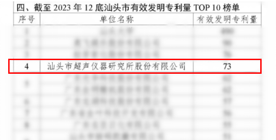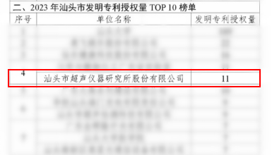 【喜訊】汕頭超聲榮登2023年汕頭市專利創(chuàng)造TOP10榜單